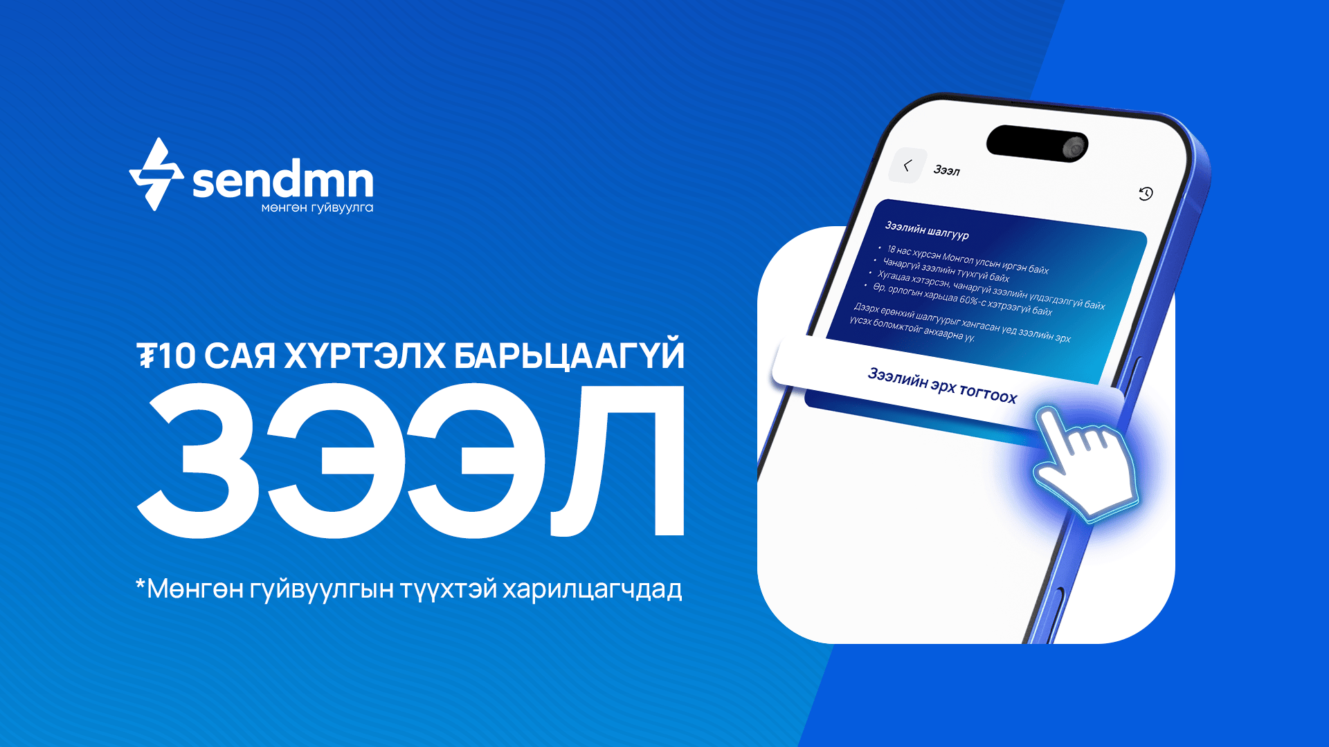 Тогтмол шилжүүлэг хийдэг SendMN аппын харилцагч танд зөвхөн мөнгөн гуйвуулгын түүх дээр үндэслэн зээлийн эрх тогтоох боломж нээгдлээ. Та нийгмийн даатгалын шимтгэл төлдөггүй байсан ч SendMN-ээр тогтмол гүйлгээ хийдэг бол цахим зээл авах боломжтой.
